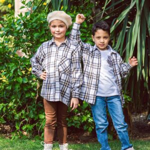 long sleeves chest pocket plaid shirt for girls and boys