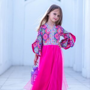 Make your little one stand out in our Pink Tulle Kaftan, the perfect blend of tradition and elegance for Ramadan, Eid, and special occasions.