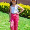 Kids Pink Printed Crop Top